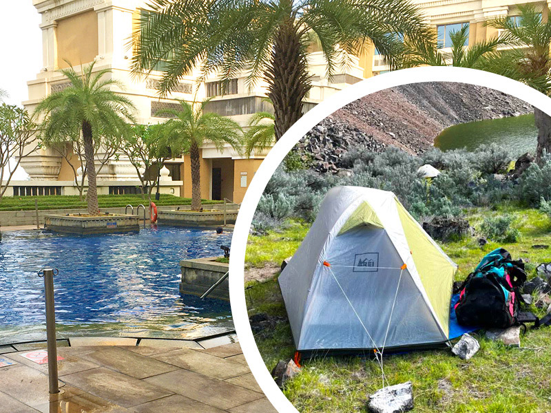 Using your taxes as a way to think about risk exposure potential is to model the estimated cost (single point) of two weeks away on a luxury vacation (left) versus a weekend getaway camping trip (right). Photos courtesy of Sally Brown