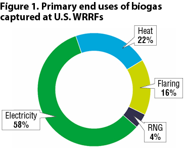 Fast forwarding to today, WRRFs surveyed utilize 80% of the biogas captured for energy. ABC’s report says 58% produce electricity and 22% produce heat (Figure 1). Only 4% of WRRFs upgrade biogas to renewable natural gas (RNG), a lower rate than other biogas sectors. The flaring of biogas at WWRFs as the primary method of preventing methane emissions, is undertaken at 16% of the sites surveyed to date (the majority of these were developed before 1980). ABC’s findings highlight a significant opportunity for municipalities to expand biogas infrastructure, turning wastewater into a reliable, renewable energy source that supports grid resilience and sustainability.